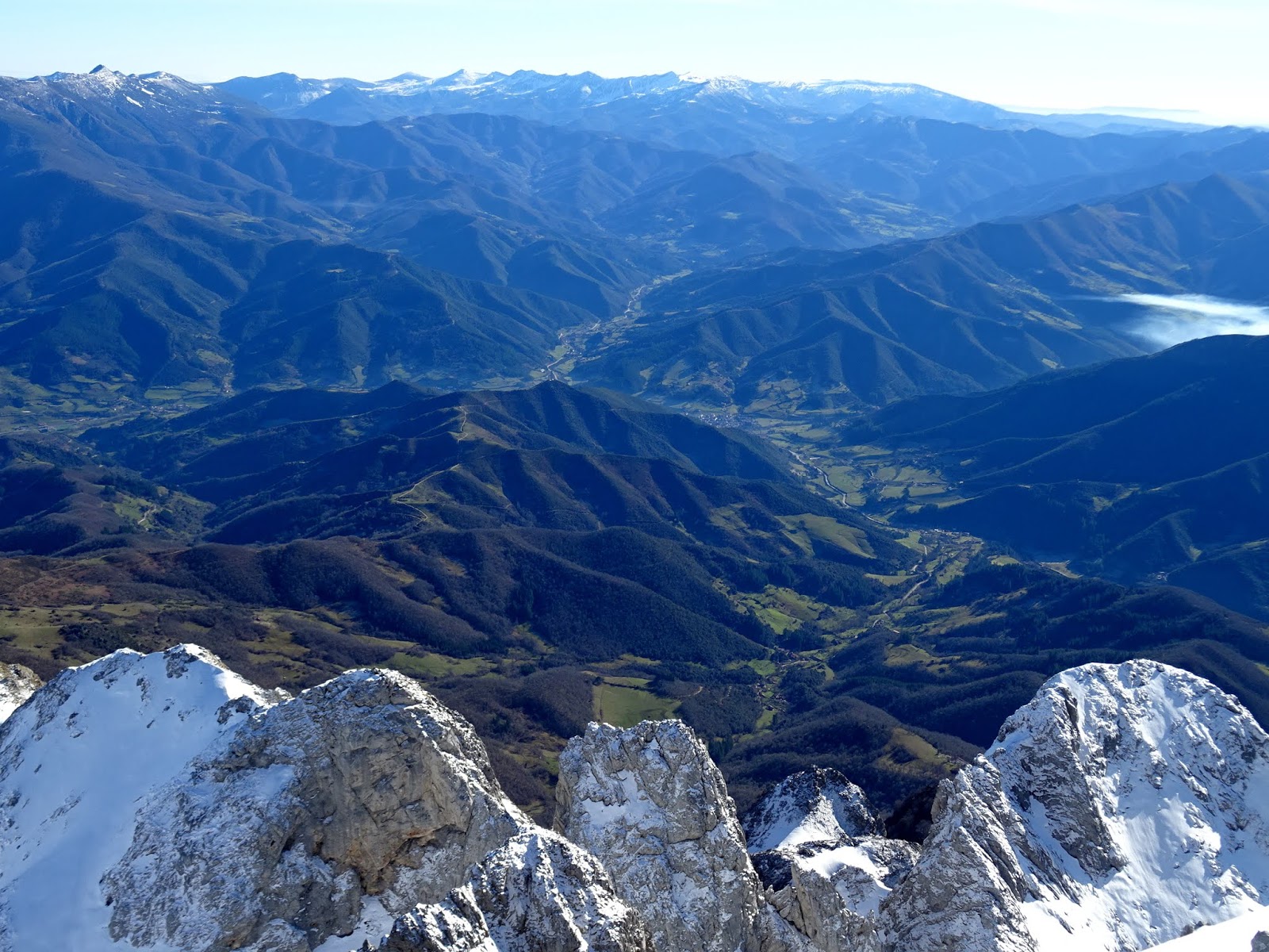 A la izquierda del Castillín vemos el pico de la Jonfria cuya cumbre ya hemos pisado en más de una ocasión. A sus pies los numerosos valles de la Liébana con la Peña Sagra y la Sierra del Cordel al fondo.